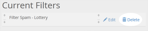 3. Under Current Filters are displayed all existing filters. Click Delete next to the appropriate one.